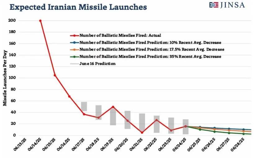 去年6月伊朗导弹预估消耗数据